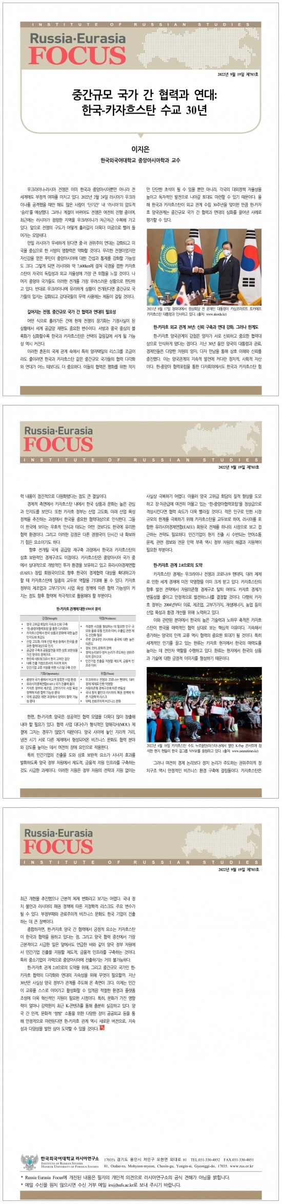 제703호 중간규모 국가 간 협력과 연대: 한국-카자흐스탄 수교 30년