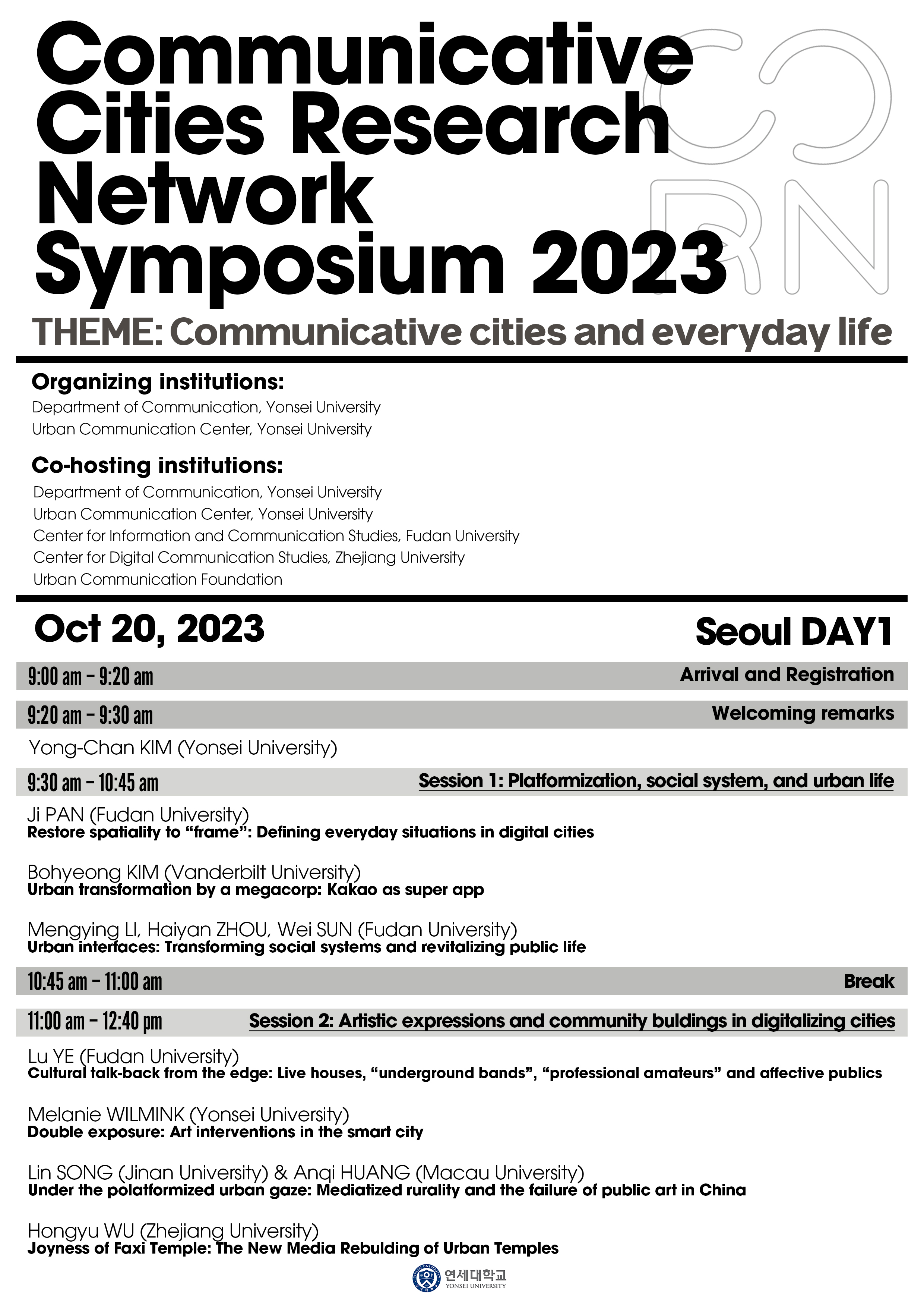 Communicative Cities Research Network Symposium 2023 개최 안내